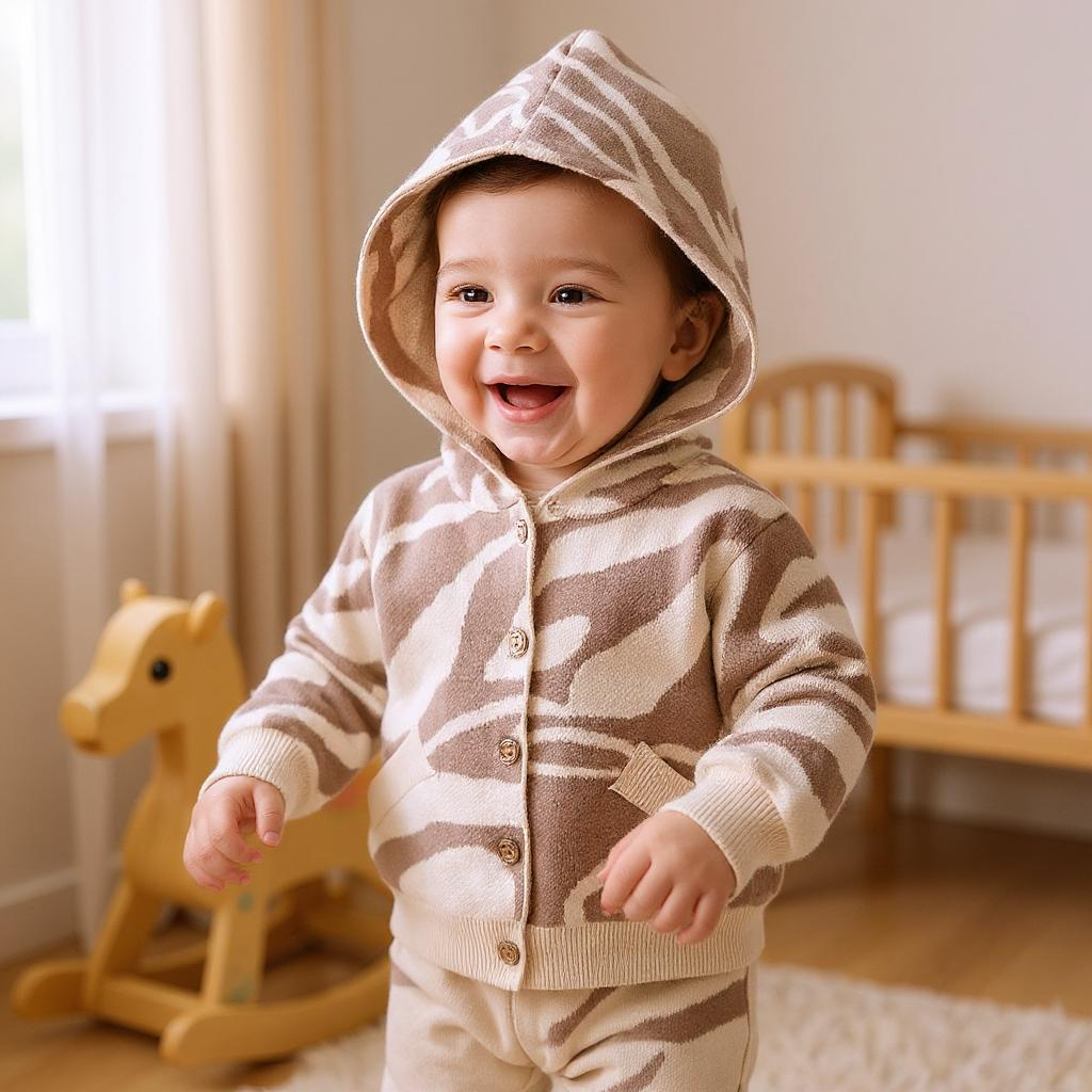 This charming textured cardigan features a subtle ocean-inspired palette with a playful hood for extra comfort and front pocket detail. Made from soft, high-quality materials to keep your little one snug and stylish. Oversized look making it perfect for layers during the colder months.