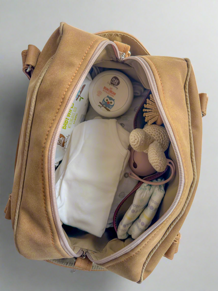 The Emerson Venture Tote is a premium vegan leather baby bag designed for parents who value both style and practicality. With its gender-neutral elegance and thoughtfully crafted design, this tote is made to accompany you on every adventure, seamlessly blending sophistication with functionality for life on the go.